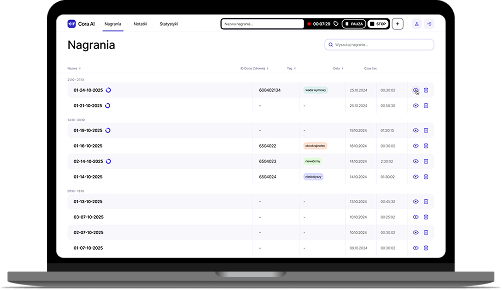 System pamięta wcześniejsze spotkania i pozwala płynnie kontynuować dokumentację bez utraty historii.