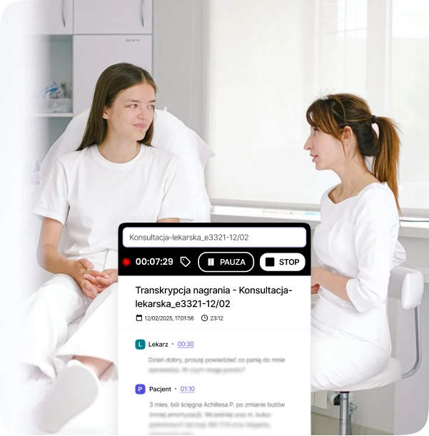 Sztuczna inteligencja precyzyjnie zapisuje przebieg wizyty, tworząc sumaryzację gotową do wklejenia do Twojego systemu dokumentacji